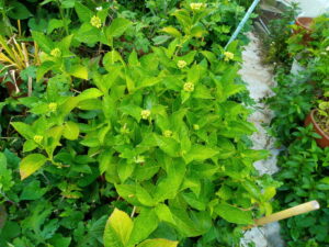 ピンク紫陽花の親株の周りの菊とドクダミをピンチして行きました。大分風が通りやすくなりました。