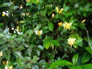 左: スイカズラの花。