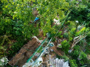 さぁ、3つある大蒜プランターを空けて、今の土の下に落ち葉を入れましょう。どんどん来季の準備をして行きましょう。Nさんの横の溝に溜まった冬の間の落ち葉を運んで来ましょう。