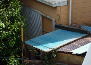 二階の東の窓の網戸を洗いました。ただいま、天日乾燥中です。