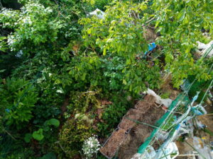 さぁ、3つある大蒜プランターを空けて、今の土の下に落ち葉を入れましょう。どんどん来季の準備をして行きましょう。Nさんの横の溝に溜まった冬の間の落ち葉を運んで来ましょう。