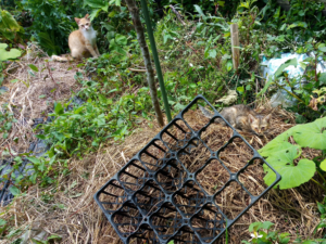 9時過ぎ、大蒜酵母の作業後半で入って来たタイガーさんが『なんの匂いだ?猫には良くない臭いだぞ!』、と言う顔をしていました。慌ててファンを回しました。笑笑 猫達は大急ぎで通過して行きました。ごめん!