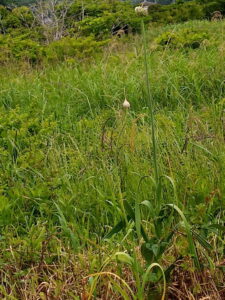 Mさんの所有地では、誰が植えたのか大きな大蒜が育っています。日当たりが良いから玉太りも良いでしょうね。