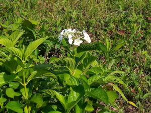 右: 白い紫陽花が初めて日の目を見ました。笑 葛や藪枯らしを取り除いたから少しは楽になったでしょ?