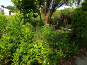 昨日は1時間位掛けて塀際のセイタカアワダチソウを切りました。柔らかいイネ科に関しては、私の草刈り機がパワーが無いから倒すことはできても根本から切る事は出来ませんでした。それでも見た目に空き家ではない状態になりました。花壇の方も180㎝位萱が茂っているので、次はそちらをやります。畝から奥はその後ですね。きっと雨が降ったら元通りになるくらい、今は草のパワーが半端ないです。