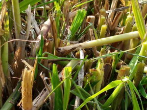 中: 草刈り機では刃が立たなかったパンパースグラスの切り口。左側のギザギザの茎がそれです。右側は庭ばさみで切りましたのでシャープです。100均の金属や刃物と同じで、そのままでは使えない類の刃が安価な草刈り機には付属品として付いて来るんですよねぇ。金属の質が、刃物の鋭利さが違う!