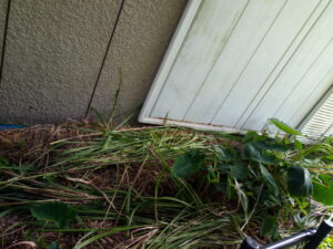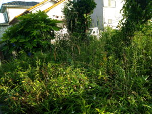 花壇の方も1m以上のセイタカアワダチソウは切りました。塀に近い処を1.8m超えの萱がびっしり生えていたのはなぎ倒しました。