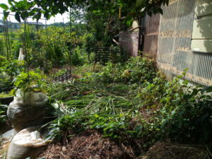 Nさんの処の萱が置きっぱなしだから少しもって来て夏蜜柑の下にでも山積みにしておくかなぁ。今回の萱は1.8m超えるから1/2~1/3にしないと庭木の根本には置けないです。Nさんの花壇に置いて置いたら草の肥料になってしまう。という訳で2回籾殻袋に入れて往復しました。後3-4回は運ばないと。セイタカアワダチソウはその次ですね。萱が終わったらまとめて置くか、畑の畝上に置いておきましょう。