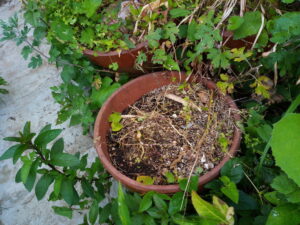 玉葱のプランターにそのままサツマイモを植えましょう。注文したのはシルクスイートたった10本だけど、狭い庭だから面積と収穫までの時間をあまり取られたくないんですね。勿論、プランターの半分の土は掻きだして木の葉を入れてから土を載せて行きます。サツマイモプランターを4本用意しましょう。くず生姜さんのプランターが最優先だけどね。
