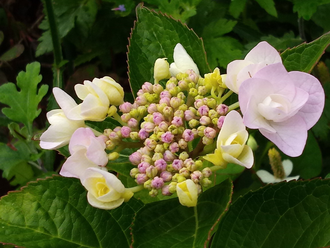 この位の時が一番ドキドキします。ガクアジサイにほんのり色が付き始め、今年はどんな花色になって呉れるのか。