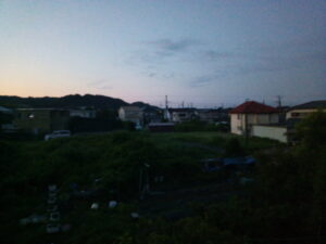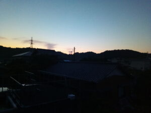 19時前に、丁度蝙蝠が出かけて行く頃、ミャオミャオと物置の屋根の上で仔猫が鳴いていました。ちゃーちゃんは氣にしながらも『先にカリカリを下さいよ~。』、と言っていました。ちゃんと咥えて元へ戻すんだよ。今夜遅くには雨になるよ。