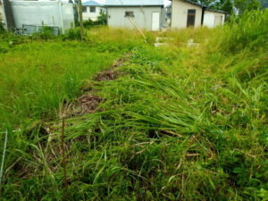 雨の時期は草と競争ですよね。萱の叢の最前列まで刈って来ました。