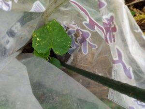 先日定植した胡瓜夏涼みです。行灯の中で頑張ってくれています。