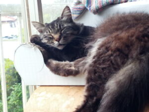 1時、毛皮を濡らした福がpcテーブルに飛び乗って来ました。うめもトラちゃんも家で寝ています。私も二度寝します。