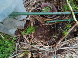 今年の秋の玉葱苗は要らないかな。先ず、手元にある小さな玉葱を育ててみます。一畝と二畝南の東側に落ち葉と萱を埋めて畝を準備しましょう。ジャガイモは将来的には木枠で作ったプランタ-に植えましょう。サイドからも入れられますので、品種を統一して置けば今よりもスペースが節約できます。