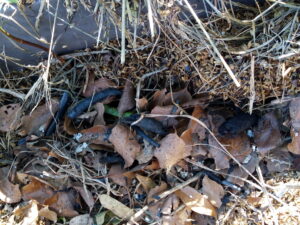 左&中: 一回目に運んできた落ち葉とセイタカアワダチソウ。