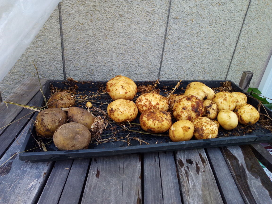 未収穫ジャガイモは後6か所です。ジャガイモのプランターはもう少し通気性が欲しい。ジャガイモは全部掘り上げました。後半は植えっ放しの処でしたのd、小さい芋が殆どでした。