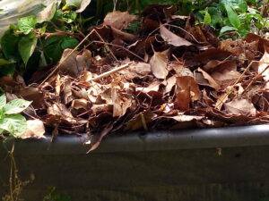 右: 今朝も1m位進みました。家屋に向かうj処に落ち葉がいっぱいでしたので、やはりこれはおかしいから取り除きました。我が家のジャガイモに使わせて貰います。取り敢えず、セイタカアワダチソウも運んで来ました。これも大事なガサガサ勇気になります。暫く夏蜜柑下で乾かします。