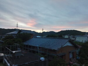 今日は歴が上空にあるらしいです。屋根が皆濡れています。物干し竿もビショビショでした。