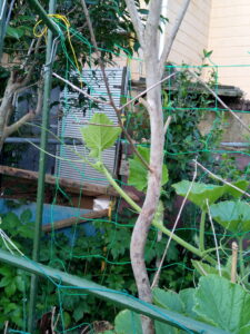 右: 一畝の南瓜。いずれも親株の摘心終えました。既に新しい子蔓を準備していますね。