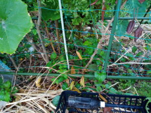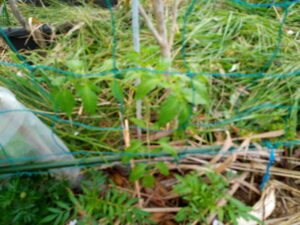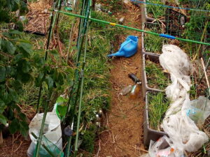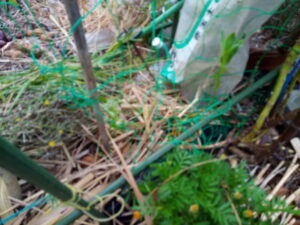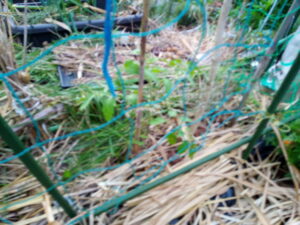 西隣さんがサツマイモを植えていたので、キョンは芋類は何でも食べるそうなので、ネットをべた掛けして行って下さい、とお願いしました。