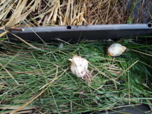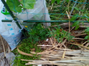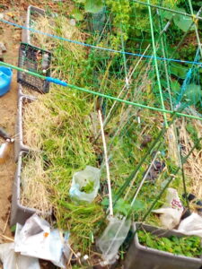 しかし、刈草を敷くと途端に蘇るのが植物なんですよね。それを見ると、もう少し頑張るか!?、となってしまいます。晴れていれば半日もしない内に量は半減します。それでも、野菜や植物が喜んで安心して呉れるなら、運びます。