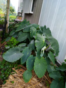 右: どこかで見た景色だと思ったらIさんの横の溝に毎年生える大株の里芋の姿に似ています。