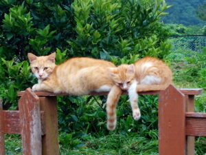 お腹いっぱい食べたトラ子とうめは夕涼みに繰り出しました。