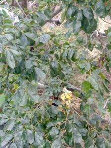お隣のジャガイモ畑から出た草を頂きました。西条柿の根本にドン!と置きました。