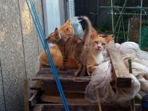 17時、一階の猫さんは食事終了。仔猫達は自分で庭に昼間はトイレをしに行きます。