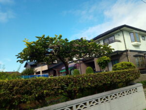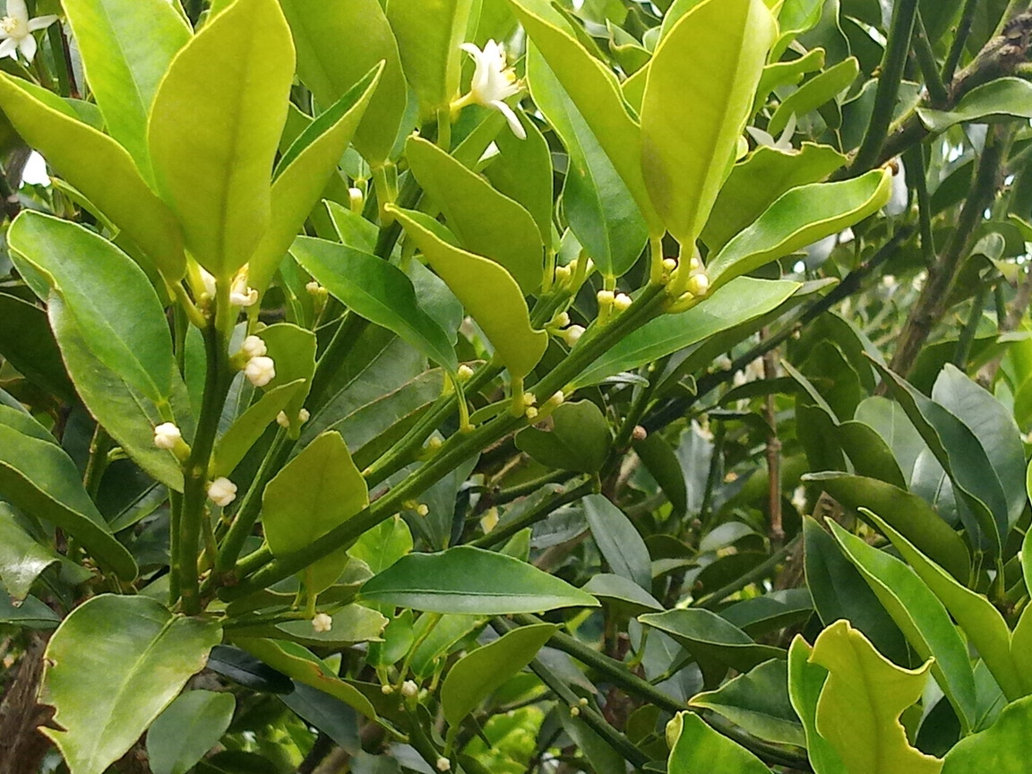 西隣さんの金柑に花が咲きました。今年二度目の花です。後もう一回咲きます。