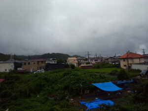 4時半、雨は後小一時間降るのかな?やや明るくはなって来ました。でも、頭上には大きな黒い雲があります。