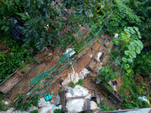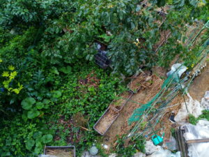 雨後だから数時間は土は触れませんが、籾殻、米糠、珈琲滓、茶殻効果が見られるか!?