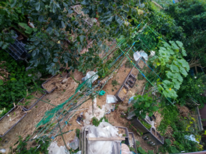 中: お隣の芝は念の為後数時間乾燥させます。畝に載せても湿気で根付きそうです。
