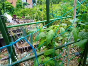 中: ネットのど真ん中をもう一本の子蔓が伸びて来ました。