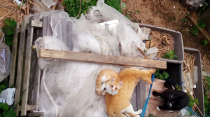 左: 今朝の雌花。受粉しました。雄花を取ったら、中に蜂さんが入っていた。笑 丁度良い、中に入って!、と思ったけど、そうは上手く行かないもんでね、飛んで行ってしまいました。一蔓に二つまでなら、なんとかなりそうです。