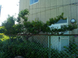 左: 実梅も飛び出している枝だけ、花芽分化を前に剪定。次は11月下旬。