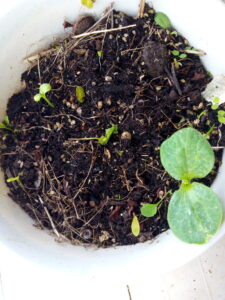 禅寺丸柿の根元から南瓜らしき、元気な苗が出て来ました。どうして?