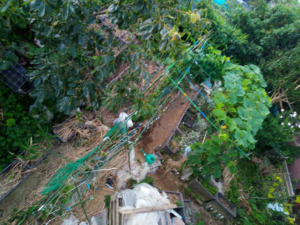 右: やはり二畝の南瓜の狙いは西条柿です。まぁ、未だネットを拡張していないから良いけど。