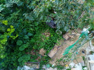 蓬、葛、セイタカアワダチソウを集めるぞ~、オー!朝一でやらないと暑いとさぼりたくなるから要注意です。実行できたら、氷結バナナを食べて可能!