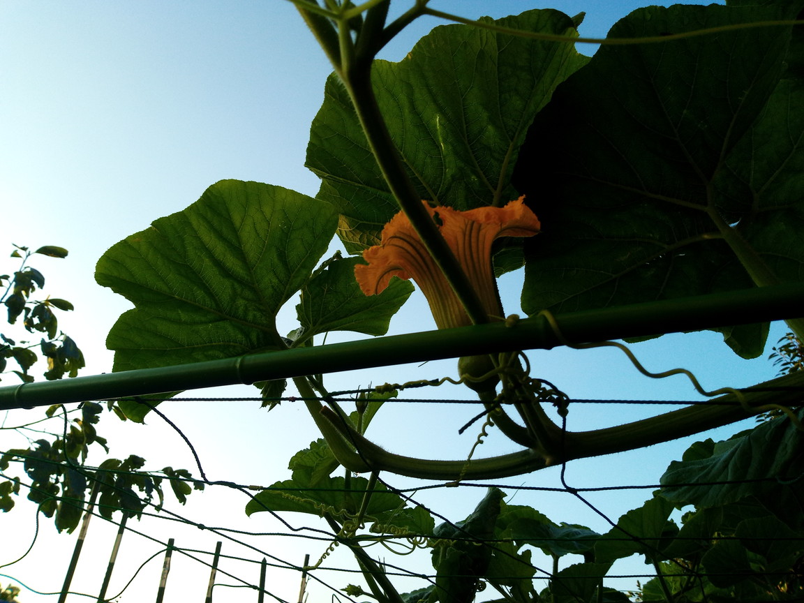 エッ!?前日には花が無い事を確認していたのに、毎朝、南瓜の雌花に驚かされます。
