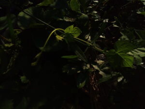 中: 昼頃になると南瓜の葉の影が地面に黒くはっきり写ります。