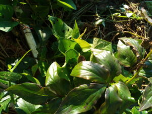 左: 一畝の南瓜の下の方の葉はうどん粉病が出ています。これは自然の摂理だそうで、不要になった葉を植物体が枯らしています。此処で慌てふためいて何か余分な事をすると矛盾が生じるそうです。もうじき収穫できる果実があるよ~、って教えて呉れています。