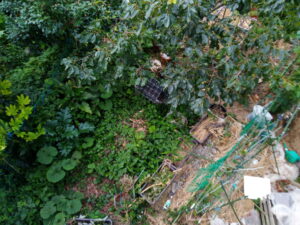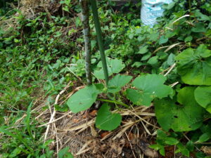 中: 千両二号茄子ですが、昨日萎れていたので、生ごみの絞り液を隣の畝で流しました。濃かったかな?、と思い水を掛けて薄めようと思っていたのですが、そのまま様子を見ました。今朝はシャッキリ回復しました。有難う。