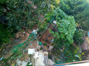 溜まって来た生ごみに更に籾殻を足して通路なりで乾燥させてみましょう。匂いはかなり軽減されて来ましたが、未だ匂うかな。嫌気にしないで好氣で育てて行きます。