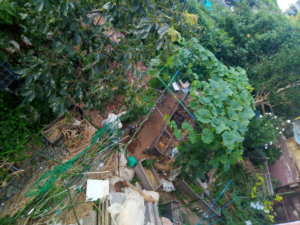 溜まって来た生ごみに更に籾殻を足して通路なりで乾燥させてみましょう。匂いはかなり軽減されて来ましたが、未だ匂うかな。嫌気にしないで好氣で育てて行きます。
