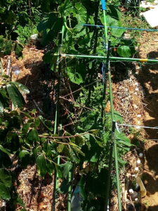 今日は朝の見回りで一番小さいトマトが(+_+)する位伸びていました。鉄タンニン液を昨日施したのを忘れていました。