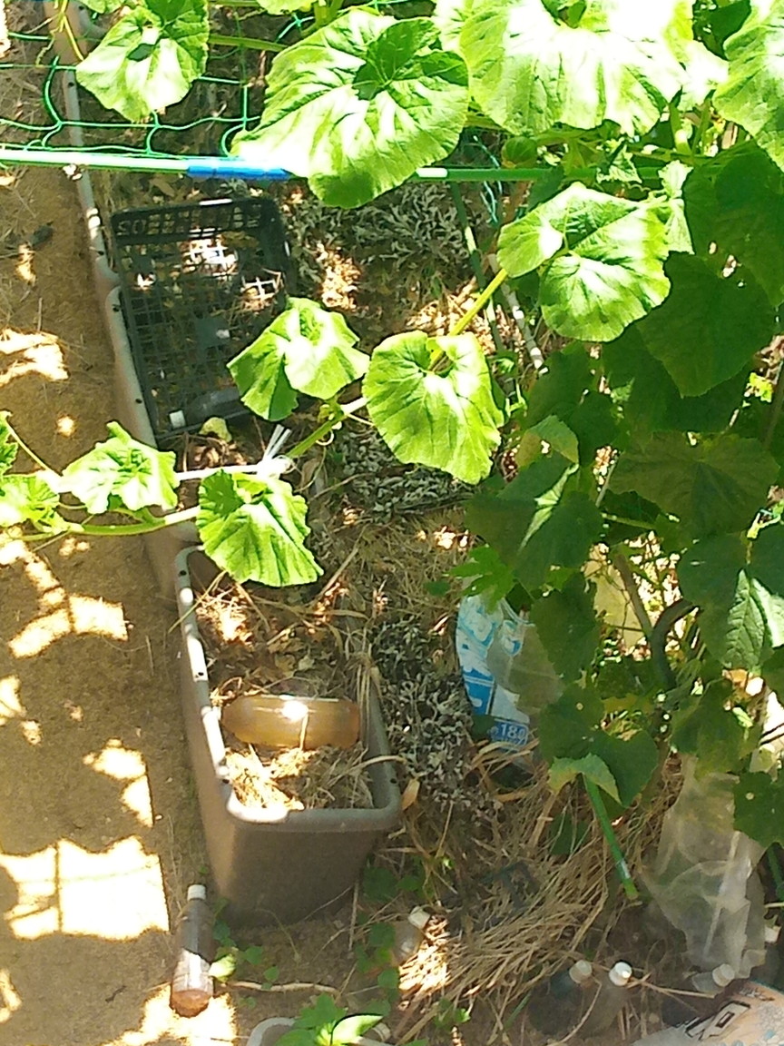 強烈な正午前の日差しに南瓜さんもグッタリ。午後は暑くても日差しは大分和らぎました。