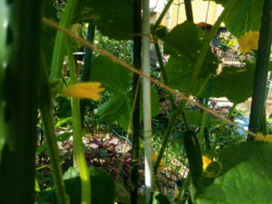 左: 明日一本収穫できるかなぁ。一畝の胡瓜さん。