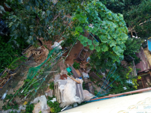 左: 受粉しなかった南瓜の実は色が変わって落ちてしまいます。